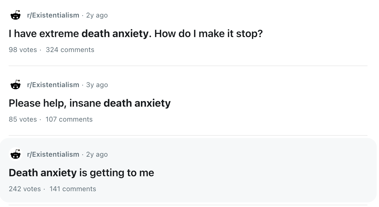 Up to 16% of people experience death anxiety, with 3% reporting intense fear